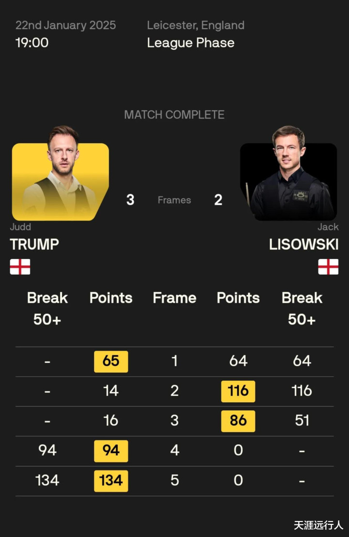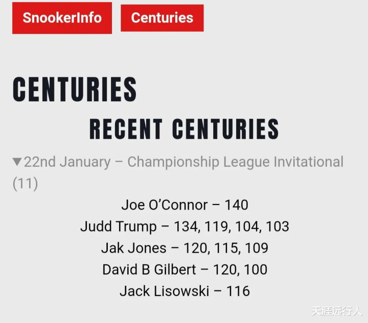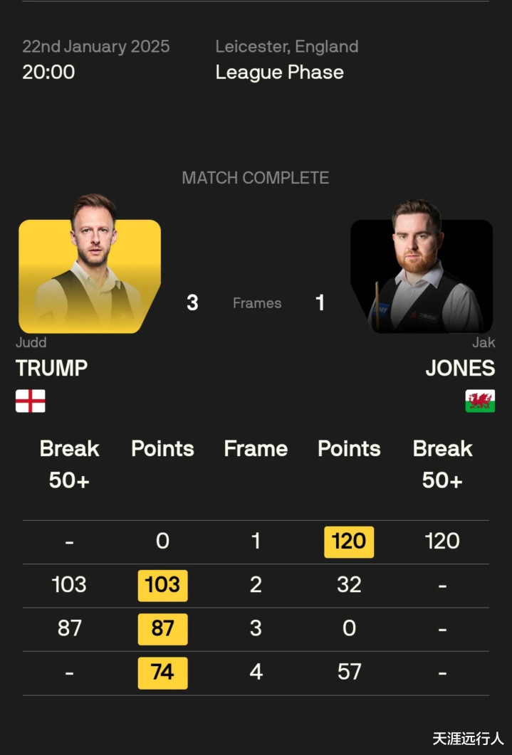 这个比赛日共打出11杆破百,准神特鲁姆普打出四杆,办事生计破百杆数总额来到1041杆,距火箭的记载还差241杆,本赛季已打出61杆,离15万英镑的百杆破百大奖,仅差39杆了;