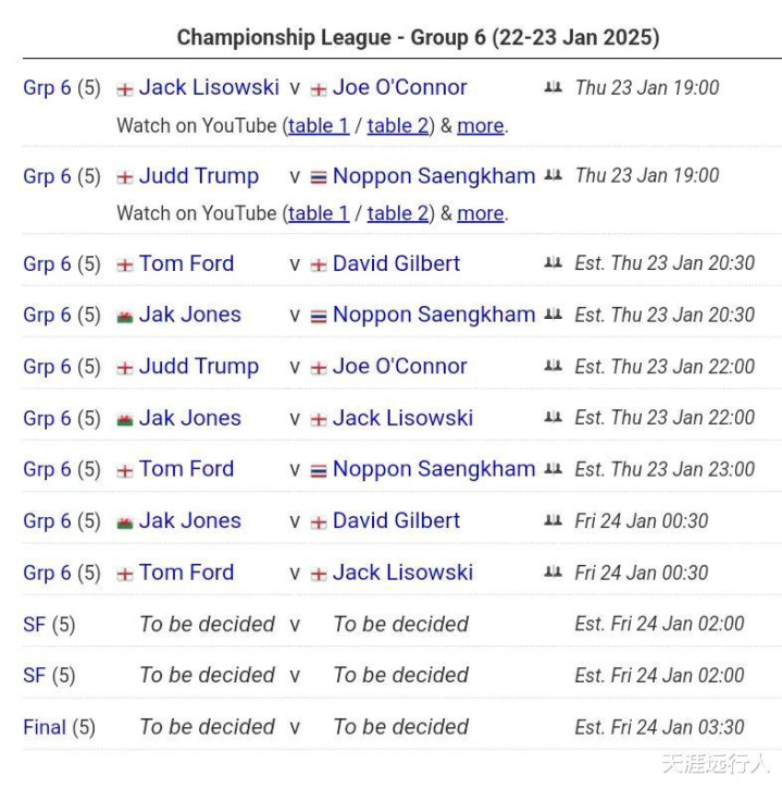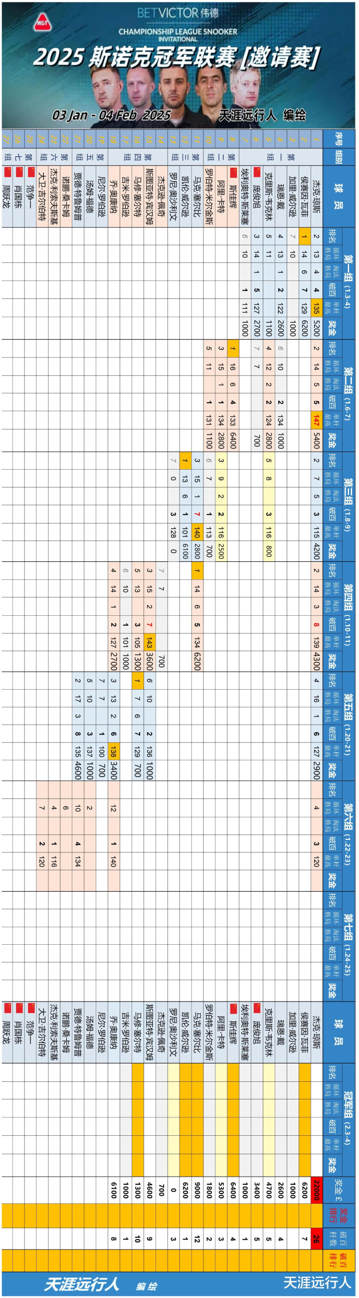 北京时代1月23日凌晨3时41分,2025 BetVictor 斯诺克冠军联赛第六小组第一比赛日体育集锦,小组轮回赛前半程的12场角逐,扫数决出了输赢。