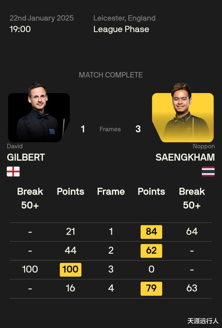 大卫·吉尔伯特 1-3 诺鹏·桑卡姆