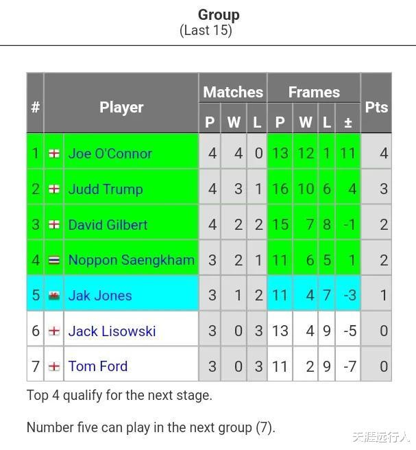 前五个小组大杀四方的杰克·琼斯,三战一胜两负,排第五,保握着出战第七小组的契机;