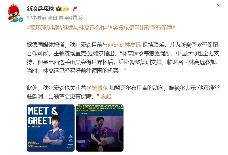 其实早在6月2日,德国穆尔豪斯俱乐部拔擢埃里克·施赖尔在专访中就流露了一个令东谈主偶然的音讯:中国乒乓名将林高远底本筹谋本年4月代表俱乐部出战欧冠要道赛事,机票以致都仍是买好了,却因中国乒协临时转机多哈世乒赛备战筹谋而未能成行,“林高远很念念来打,他以致都买好了机票,但中国乒协断绝了,需要让他十足专注于多哈世乒赛。”施赖尔在镜头前难掩缺憾;联系词就在6月6日采访中,这位德国拔擢流露了另一则蹙迫音讯:行将加盟萨尔布吕肯俱乐部的奥运冠军樊振东已得回中国乒协批准常驻欧洲,何况出勤率将将会有保险!